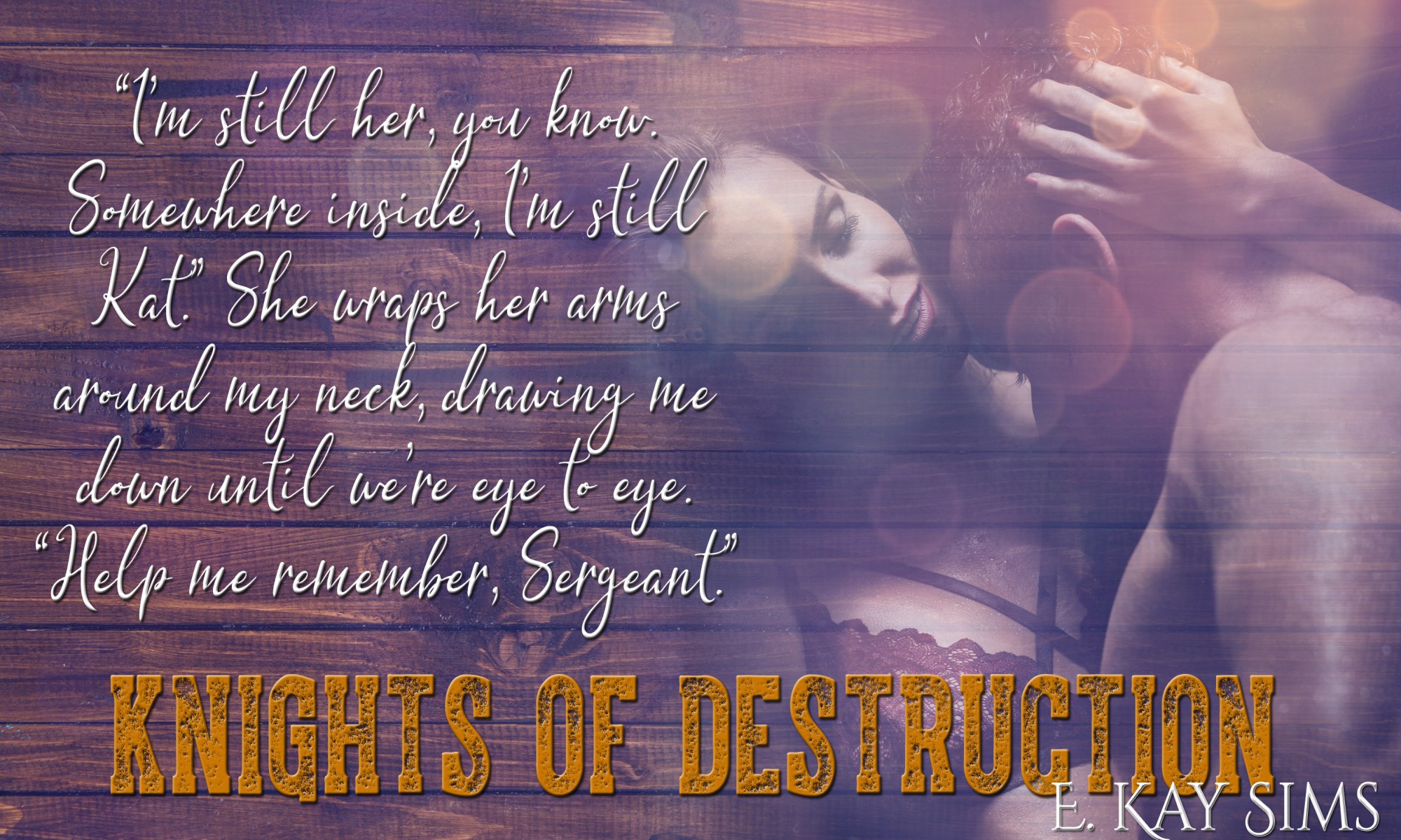 Knights of Destruction by E Kay SimsKatica/Eve finds Wyatt/Dragon back in her life. As her human and cyborg sides war and reunite she also has to deal with evil on a personal and worldwide scale. Can the love they once shared bring them together as they fight injustice and chaos? I love these two characters and how their story unfolds in human and scientific paths twisting and turning. Another page turner! Can’t wait for book 3 in this series!