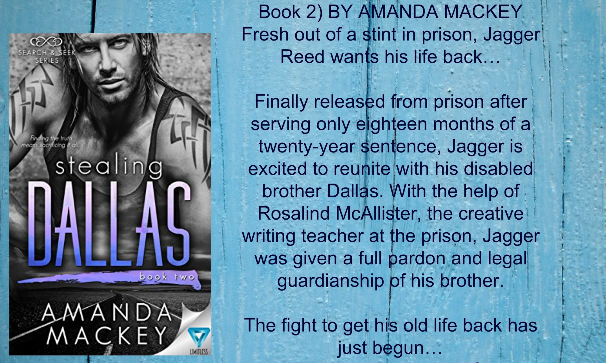 Posted on July 30, 2018 by The Owl LadyJAGGERS BROTHER DALLAS HAS BEEN KIDNAPPED AND JAGGER AND ROSE MUST STEAL HIM BACK! STEALING DALLAS BY AMANDA MACKEY karenwritesmurder A FABULOUS REVIEW FOR STEALING DALLAS! A QUOTE FROM THE STORY!!! AVAILABLE AT AMAZON View original postPlease share: Share on Facebook (Opens in new window) Facebook Share on LinkedIn (Opens in new window) LinkedIn Share on Pinterest (Opens in new window) Pinterest Share on Pocket (Opens in new window) Pocket Share on Tumblr (Opens in new window) Tumblr Share on X (Opens in new window) X More Email a link to a friend (Opens in new window) Email Print (Opens in new window) Print Share on Reddit (Opens in new window) Reddit Share on Flipboard (Opens in new window) Flipboard Share on Telegram (Opens in new window) Telegram Share on WhatsApp (Opens in new window) WhatsApp Like Loading... Related