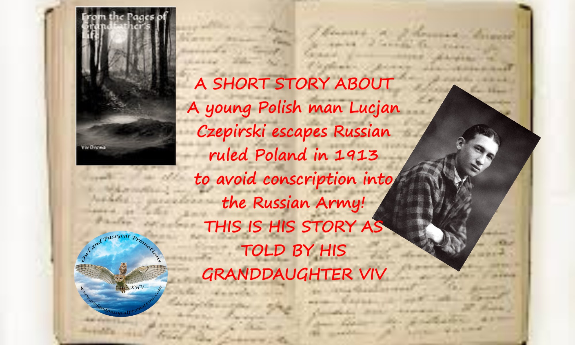 Posted on August 27, 2018 by The Owl LadyMEET YOUNG LUCJAN CZEPIRSKI, A BRAVE YOUNG MAN LOOKING FOR A BETTER LIFE AND RUNS TO AVOID FIGHTING HIS OWN PEOPLE IN 1913 POLAND karenwritesmurder AVAILABLE AT AMAZON View original postPlease share: Share on Facebook (Opens in new window) Facebook Share on LinkedIn (Opens in new window) LinkedIn Share on Pinterest (Opens in new window) Pinterest Share on Pocket (Opens in new window) Pocket Share on Tumblr (Opens in new window) Tumblr Share on X (Opens in new window) X More Email a link to a friend (Opens in new window) Email Print (Opens in new window) Print Share on Reddit (Opens in new window) Reddit Share on Flipboard (Opens in new window) Flipboard Share on Telegram (Opens in new window) Telegram Share on WhatsApp (Opens in new window) WhatsApp Like Loading... Related