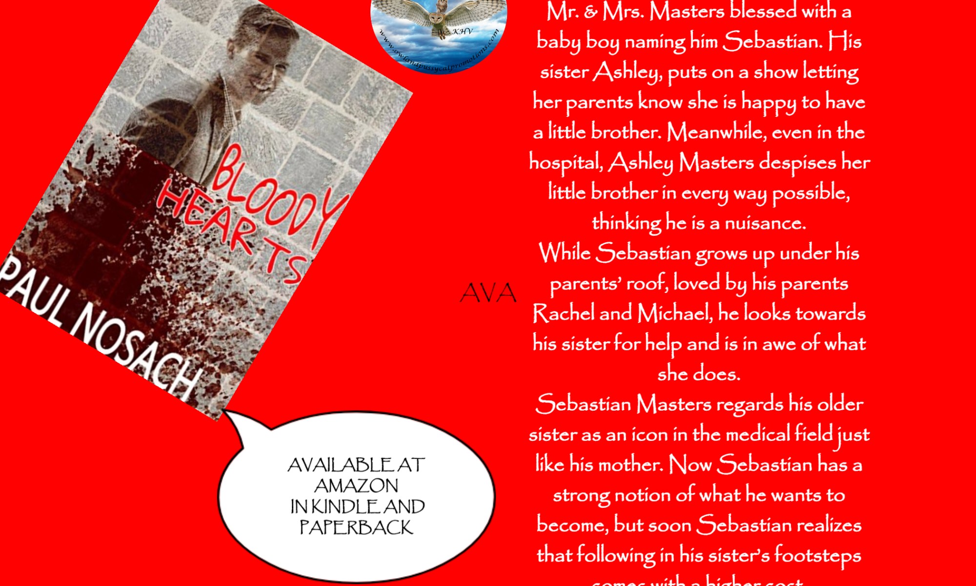 Posted on September 30, 2018 by The Owl LadyWHAT IS THE COST OF TRYING TO FOLLOW IN HIS SISTERS FOOTSTEPS? BLOODY HEARTS–HEARTS SERIES BOOK 1–PAUL NOSACH karenwritesmurder Bloody Hearts Kindle Edition PAPERBACK View original postPlease share: Share on Facebook (Opens in new window) Facebook Share on LinkedIn (Opens in new window) LinkedIn Share on Pinterest (Opens in new window) Pinterest Share on Pocket (Opens in new window) Pocket Share on Tumblr (Opens in new window) Tumblr Share on X (Opens in new window) X More Email a link to a friend (Opens in new window) Email Print (Opens in new window) Print Share on Reddit (Opens in new window) Reddit Share on Flipboard (Opens in new window) Flipboard Share on Telegram (Opens in new window) Telegram Share on WhatsApp (Opens in new window) WhatsApp Like Loading... Related