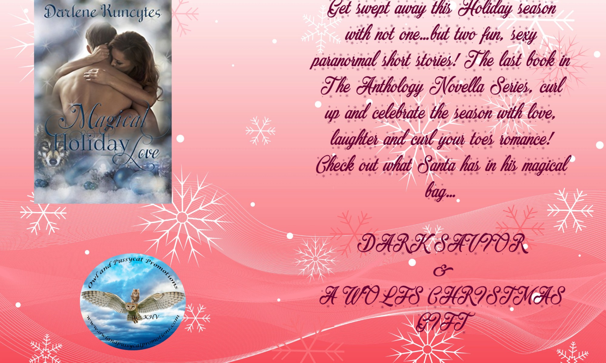 Posted on December 7, 2018 by The Owl LadyGrab these 2 fab stories in 1 book for only 99 cents! Magical Holiday love by Darlene Kuncytes!!!! Dark Savior & A Wolfs Christmas gift! karenwritesmurder AVAILABLE AT AMAZON View original postPlease share: Share on Facebook (Opens in new window) Facebook Share on LinkedIn (Opens in new window) LinkedIn Share on Pinterest (Opens in new window) Pinterest Share on Pocket (Opens in new window) Pocket Share on Tumblr (Opens in new window) Tumblr Share on X (Opens in new window) X More Email a link to a friend (Opens in new window) Email Print (Opens in new window) Print Share on Reddit (Opens in new window) Reddit Share on Flipboard (Opens in new window) Flipboard Share on Telegram (Opens in new window) Telegram Share on WhatsApp (Opens in new window) WhatsApp Like Loading... Related