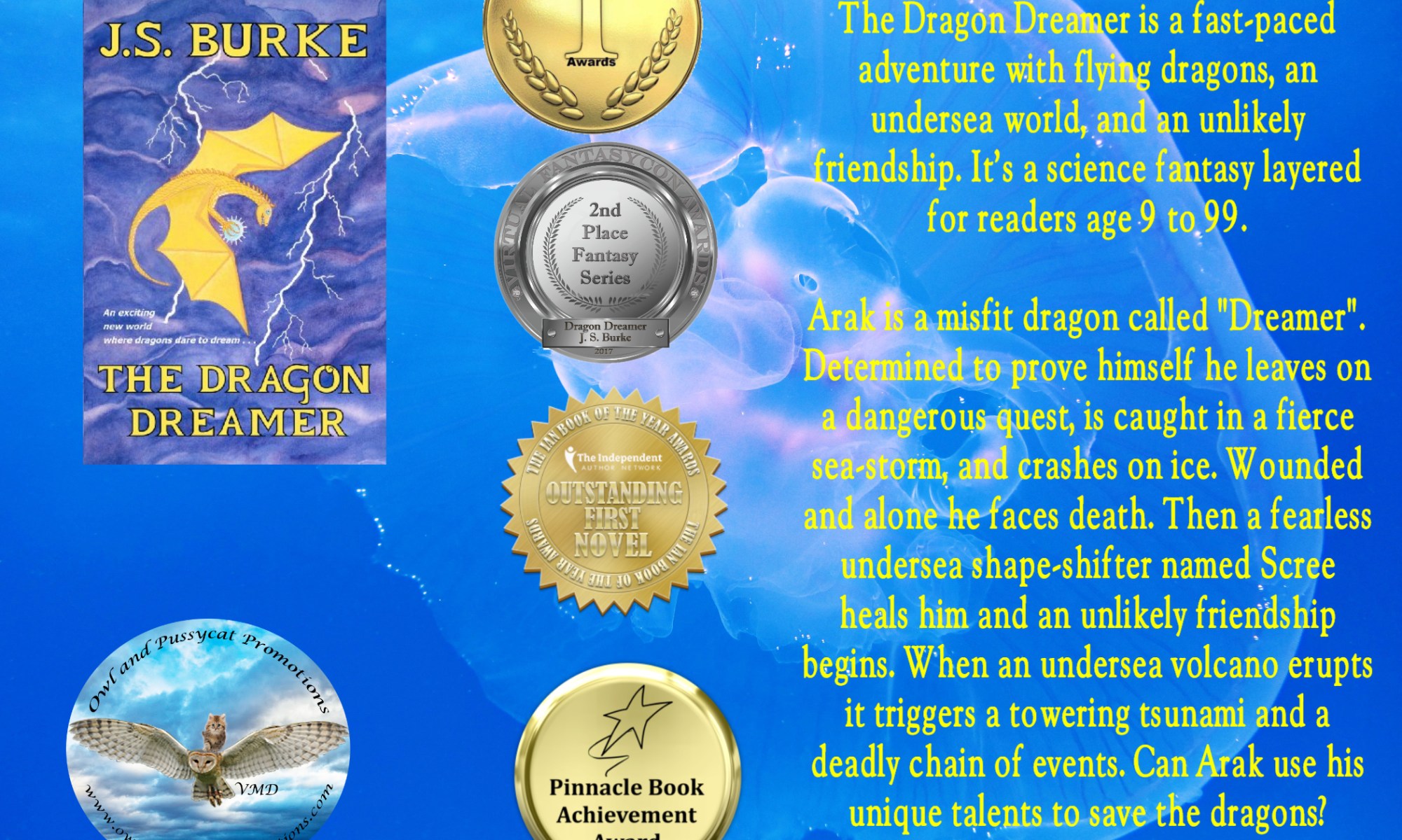 is a stand-alone book I of the Dragon Dreamer series: Young Adult Science Fantasy. “The Dragon Dreamer” received IAN First Place for Best First Novel. It’s also an IAN Finalist for Best Science Fiction and for Best Fantasy Book. This series is written for ages 9 and older.